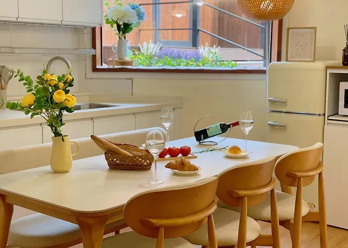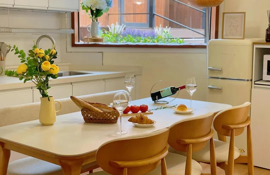 A fully furnished kitchen is ideal for preparing home-cooked meals. 10 Minutes From Hongdae Station, 3 Rooms 2 Bathrooms, King Bed, Private Yard, Free Parking, Up To 7 Guests, Free Luggage Storage is within a 300-metre distance of Donggyodongsamgeori bus stop and fairly close to Hongik University underground station. There is a terrace as a spot to unwind.